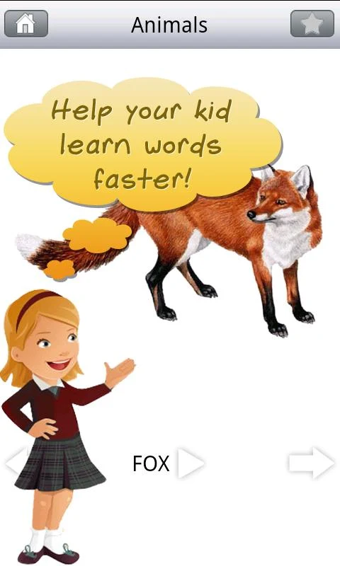 Sono presenti più di 300 parole comuni italiane utilizzate nella vita quotidiana, con la relativa immagine. Le immagini sono presentate con un audio molto chiaro e ben scandito. In particolare nella sezione dedicata agli animali, ogni animale ha associato il verso corrispondente.